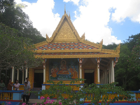 | Ngoài ra, chung quanh ngôi chánh điện là những ngôi bảo tháp (stupa) lát gạch men, nhiều kiểu dáng khác nhau, là nơi đề thờ tro cốt của các vị sư sãi cùng người thân quá cố theo phong tục dân tộc Khmer. Từ chánh điện, rảo bước về hướng tây du khách sẽ đến dãy nhà Sala, là nơi sinh hoạt cộng đồng, hội họp, làm lễ, tiếp khách và là nơi nghỉ ngơi của các sư, đôi khi nhiều đoàn hành hương cũng nghỉ đêm tại đây (Ảnh: Internet). |